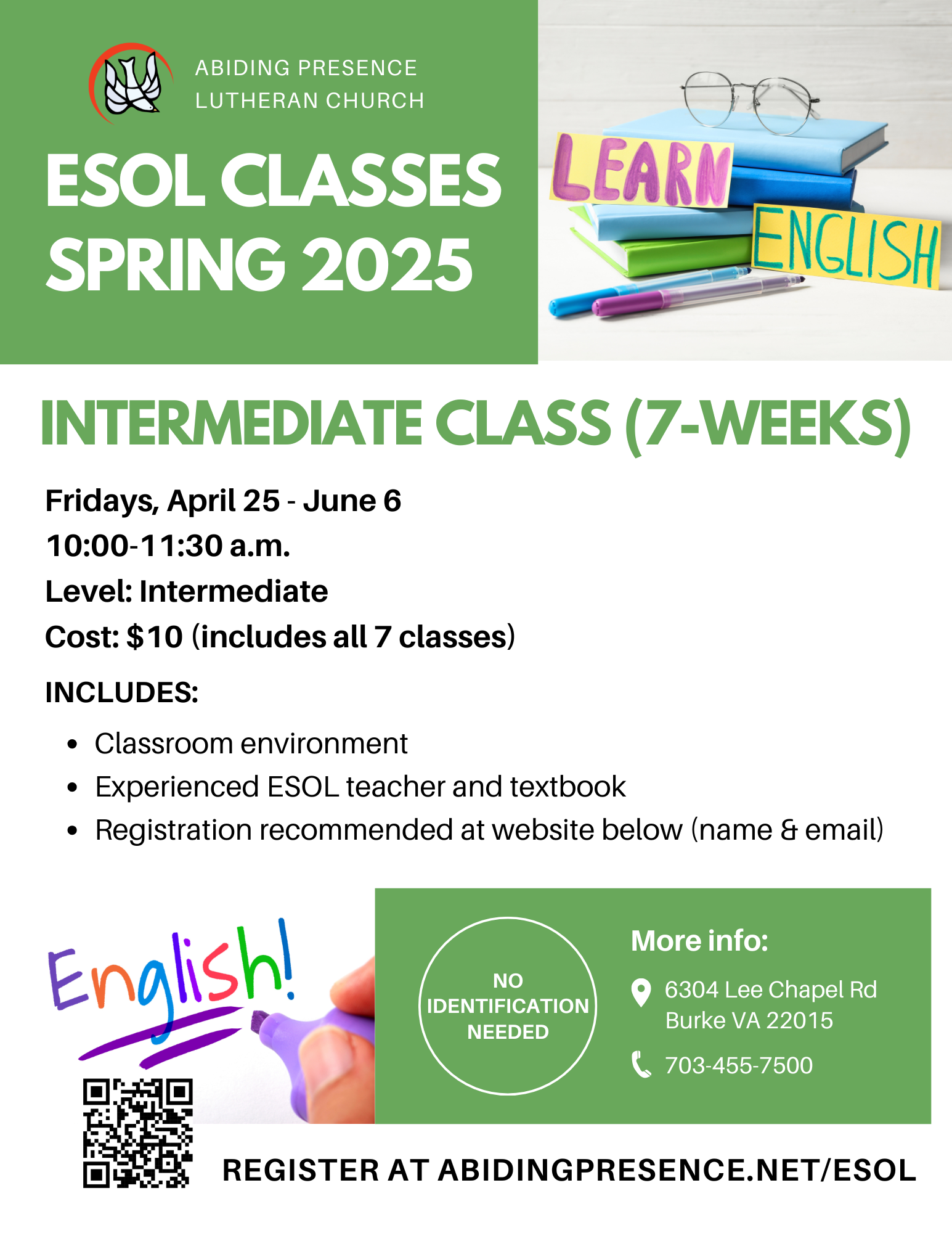 This class is open to Intermediate level English language learners. We will come together every Friday to work on learning or improving English speaking skills. In this classroom, teacher-led environment you will use a textbook with weekly home assignments. Signup is required on the form below.