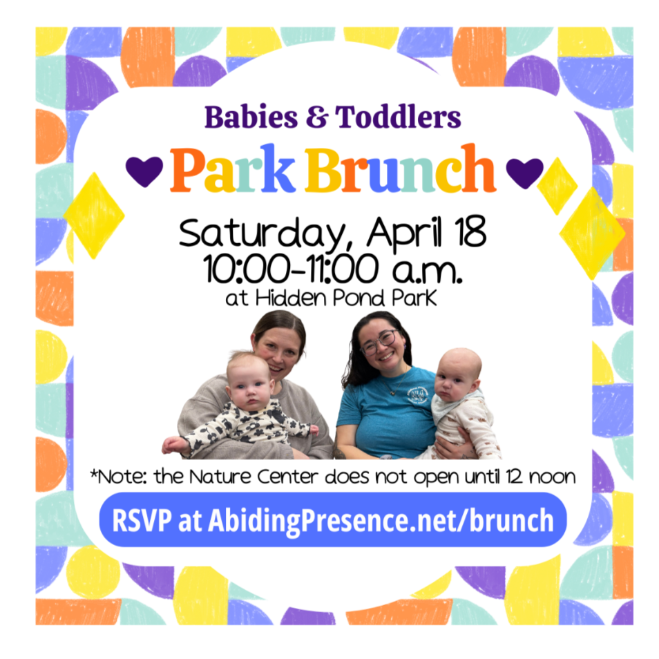 In April, we are adventuring to Hidden Pond Park. Join Ms. Michaela for a fun park date. We will have donuts, but this is going to be BYOC (bring your own coffee) for the morning! You can RSVP here for brunch. All are welcome, so bring a friend. If you have questions, you can reach out to our Children & Family Minister, Michaela Silvis.