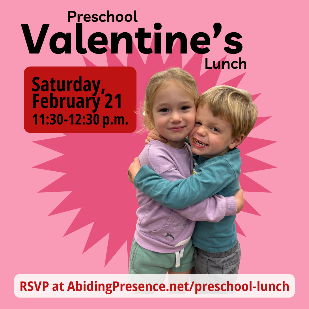 In February, we are having a Valentine’s lunch with our preschoolers. Join us for a pizza lunch, a valentine’s craft and a great time to hangout with friends we love!